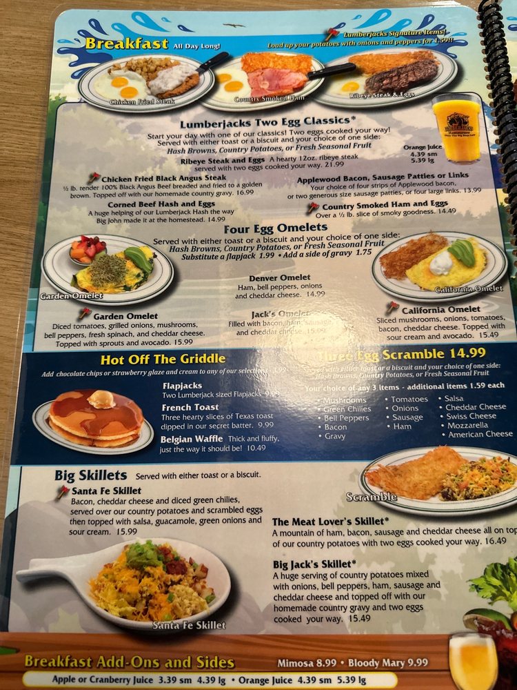 Start your day with their renowned Make Your Own Three-Egg Scrambles or dive into the savory Meat Lover's Skillet, packed with bacon and sausage. The extensive menu also includes delectable appetizers like Jack's Appetizer Combo and crispy chicken strips. For those seeking a deal, the Early Bird Special Menu presents budget-friendly entrees, served with generous sides.
